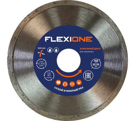 Алмазный диск со сплошной кромкой 115х22.23 мм для керамической плитки Flexione 50000415