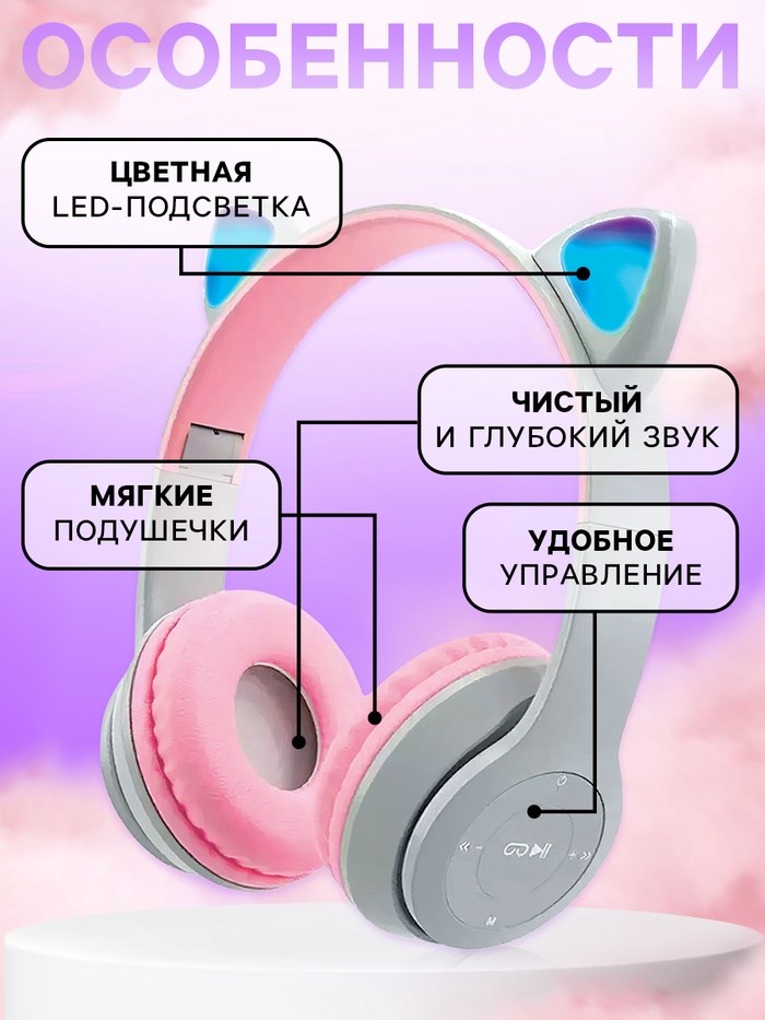 Беспроводные наушники дадут ребёнку возможность почувствовать себя стильным и взрослым! Смотрите в них любимые фильмы и видео, общайтесь по телефону и наслаждайтесь музыкой. Наушники с подсветкой подойдут для домашнего досуга, онлайн-занятий и спортивных тренировок. Подключение по Bluetooth даёт свободу движения, а складная конструкция позволит брать их с собой куда угодно. Аксессуар можно преподнести в качестве подарка на день рождения.