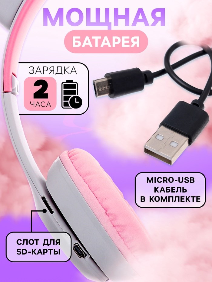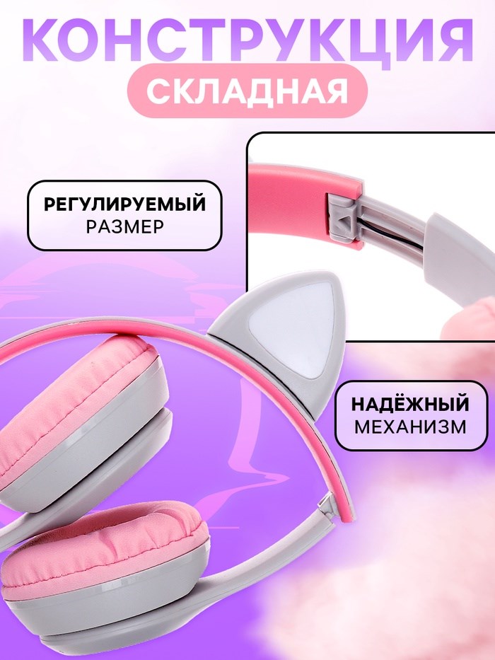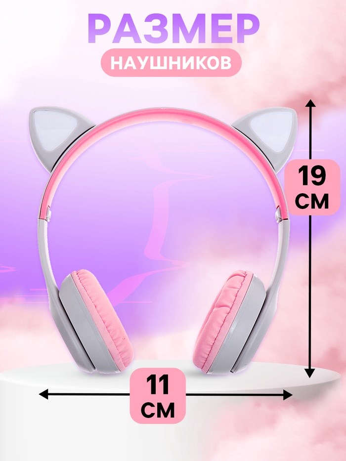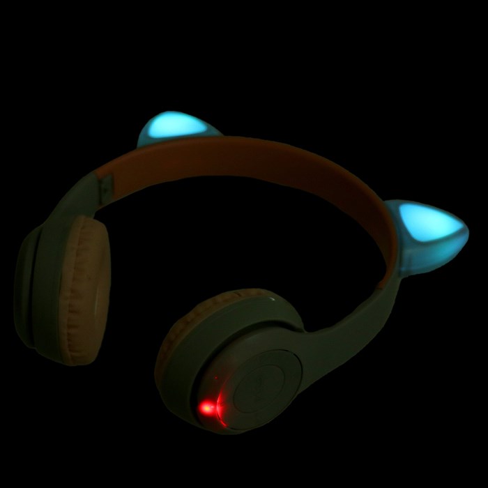 Беспроводные наушники «Котик», световые эффекты, складные, цвет серый