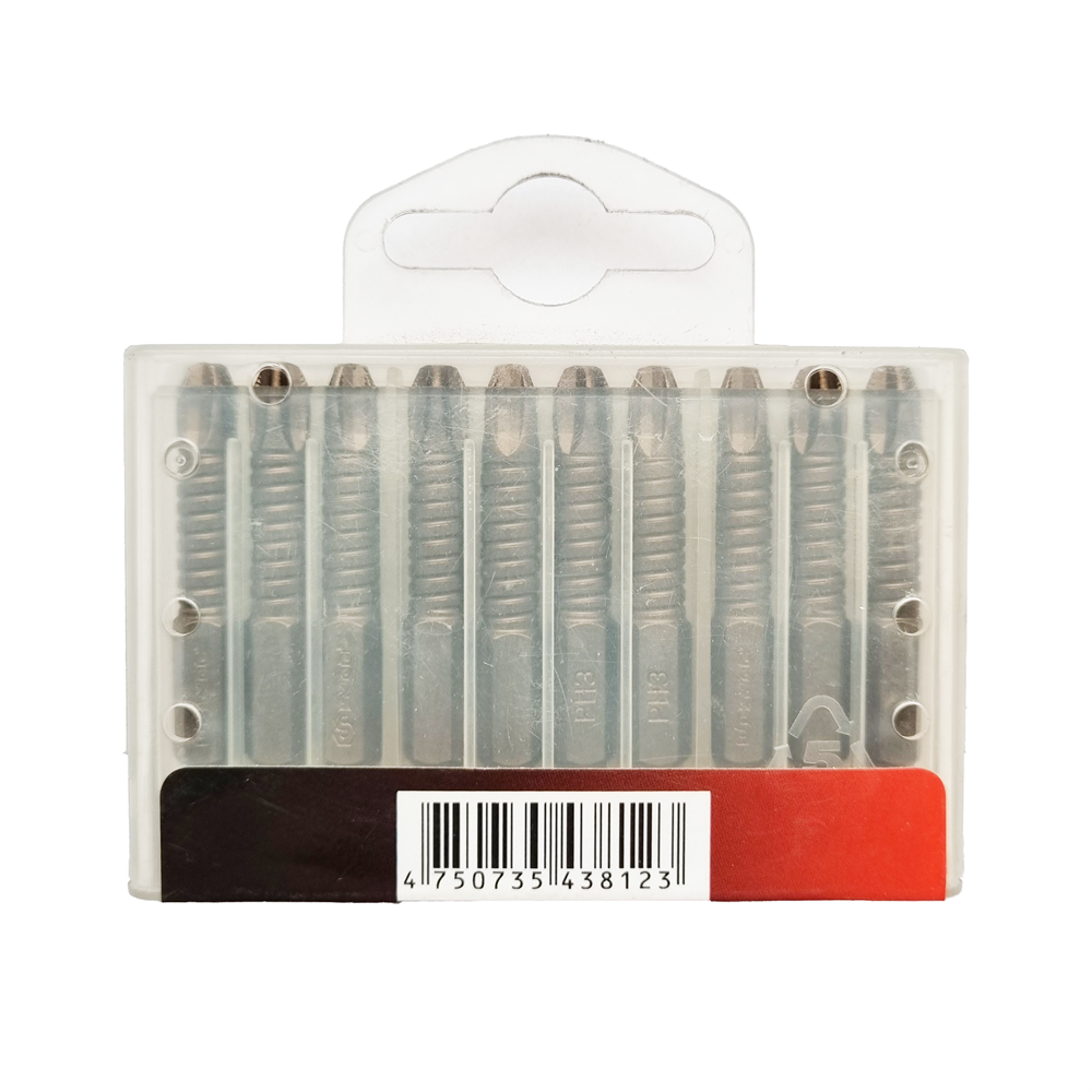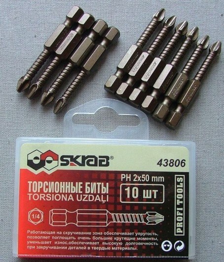 Биты торсионные антислип SKRAB 43812 предназначены для работы в ударном режиме с дрелями-шуруповертами.Благодаря увеличенной торсионной зоне шлиц бит предохраняется от разрушения за счет поглощения импульса, а дополнительные круговые риски снижают влияние ударных нагрузок.Биты изготовлены из высококачественной стали S2 методом ковки. Отличаются высоким ресурсом, прочностью и точностью.Прецизионная геометрия шлица обеспечивает надежный захват метизов, а магнитный наконечник создает комфорт при работе.Технические характеристики Тип бит : односторонние ; Наконечник : PH3 ; Длина, мм : 50 ; Количество бит, шт : 10 ; Хвостовик бит : 1/4 (тип Е) ; Магнитная : есть ; Ударные биты : есть ; Ограничитель глубины: нет ; Материал бит : S2 ; Torx (TT) : нет ; Форма наконечника бит : PH ; Цветная маркировка шлица: нет ;Комплектация