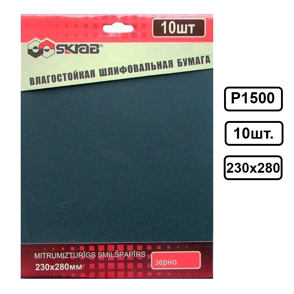 Бумага наждачная влагостойкая 230 x 280 мм 10 листов P1500 SKRAB 35729