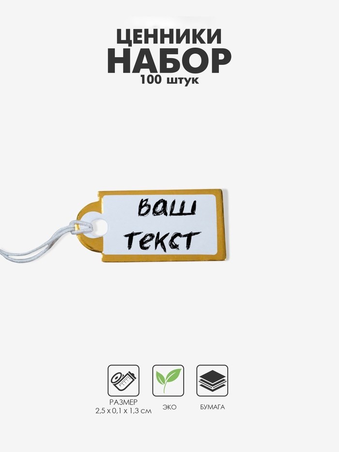 Ценник набор 100шт, 1,3×2,5, цвет бело-золотой