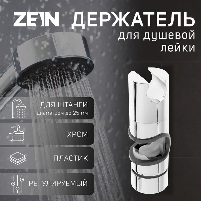 Держатель лейки для душевой стойки ZEIN Z87, универсальный 25 мм, пластик, хром