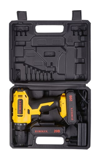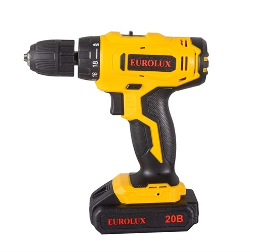 Аккумуляторная дрель-шуруповерт Eurolux ДА-20/2Li – ручной электроинструмент с регулируемым крутящим моментом, предназначенный для закручивания и откручивания шурупов, саморезов, винтов и других видов крепежных изделий, а также сверления отверстий в различных конструкционных материалах.