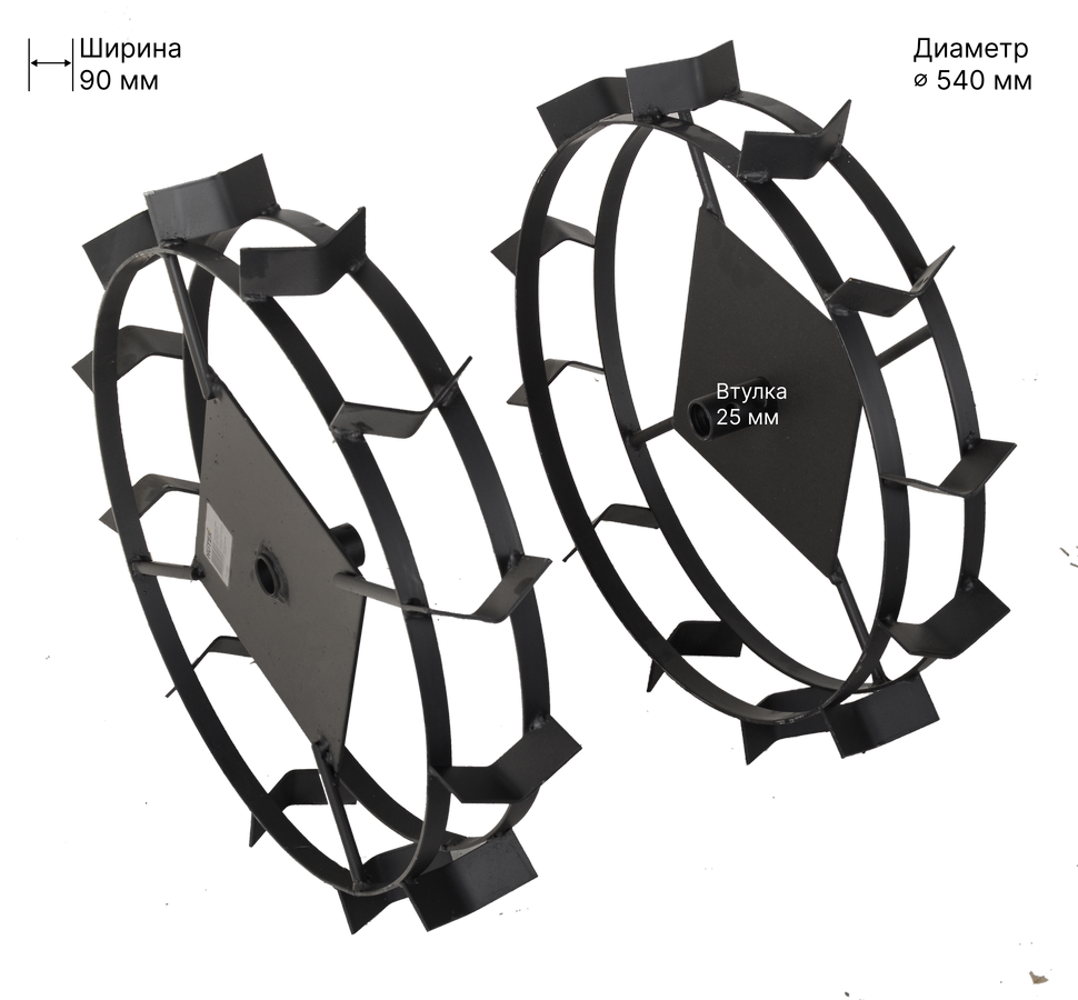 Грунтозацепы — специальные насадки на мотоблоки и мотокультиваторы. Предназначены для улучшения сцепления с грунтом и предотвращения пробуксовок, увеличивают тяговое усилие а так же создают дополнительное рыхление почвы. Необходимы при таких работах с почвой, как рыхление, окучивание и тд.Грунтозацепы 540х90 совместимы с мотокультиваторами GMC-5.5,GMC-6.5, GMC-6.8, GMC-7.0, а также с другими машинами со ступицей под вал 25 мм.Диаметр 540мм. Ширина 90мм Рекомендовано использовать с 71/3/67 Удлинители колёсной оси для GMC-5.5,GMC-6.5,GMC-6.8,GMC-7.0 (вал d 25*25*185) (комп. 2 шт.).
