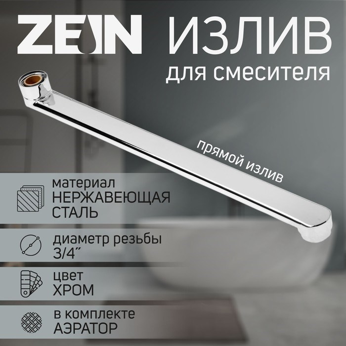 Излив для смесителя ZEIN, 3/4", прямой, нержавеющая сталь, 35 см, аэратор пластик