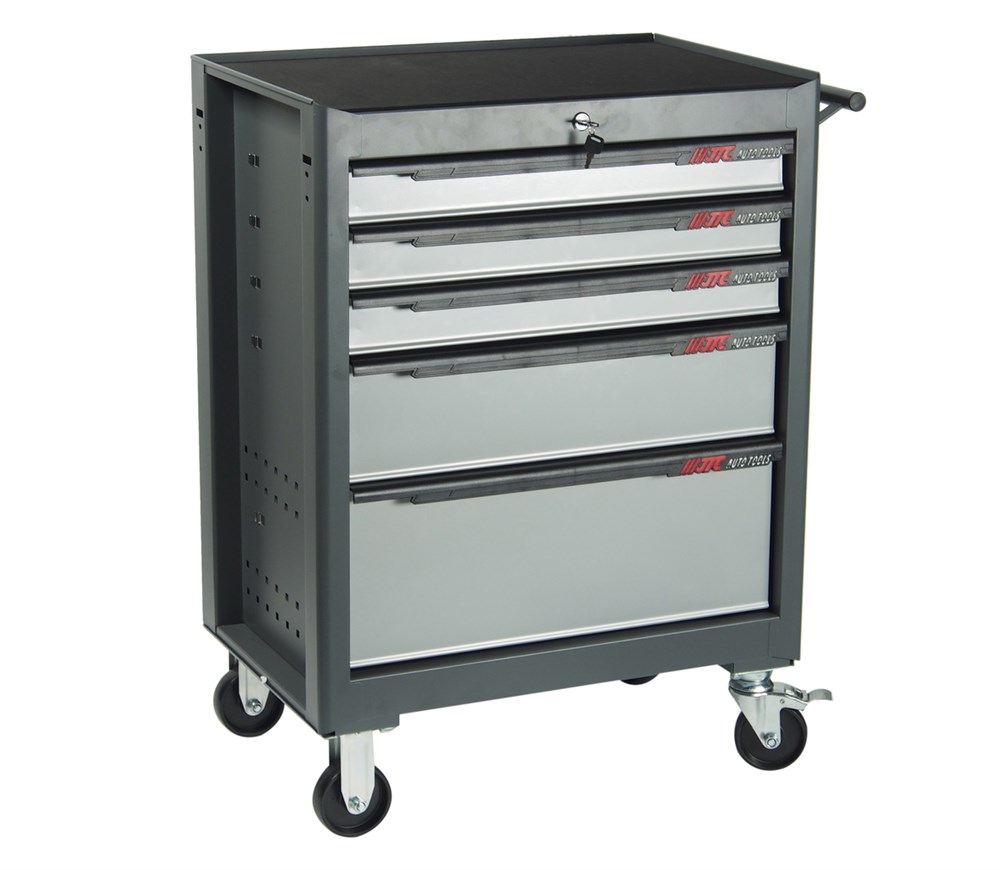 JTC-S1065 - Тележка инструментальная 5 секций серая JTC - Размеры ящиков: - 3 верхних ящика: 568x398x75 мм - средний ящик: 568x398x154 мм - нижний ящик: 568x398x233 мм Компактная ручка способствует удобному перемещению во время работы. Роли