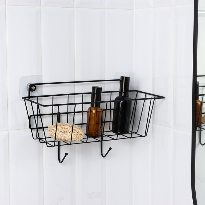 Корзина с 2 крючками, 31,5×13×20 см, цвет черный