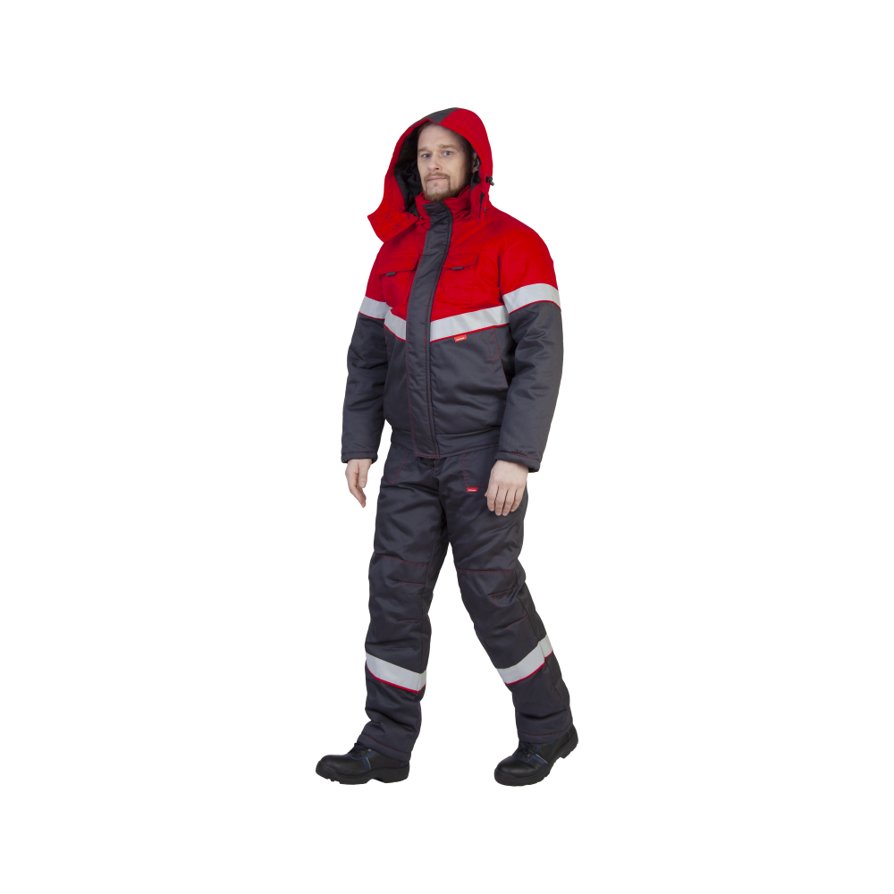 Костюм рабочий Навигатор утепленный, куртка+полукомбинезон, серый+красный
