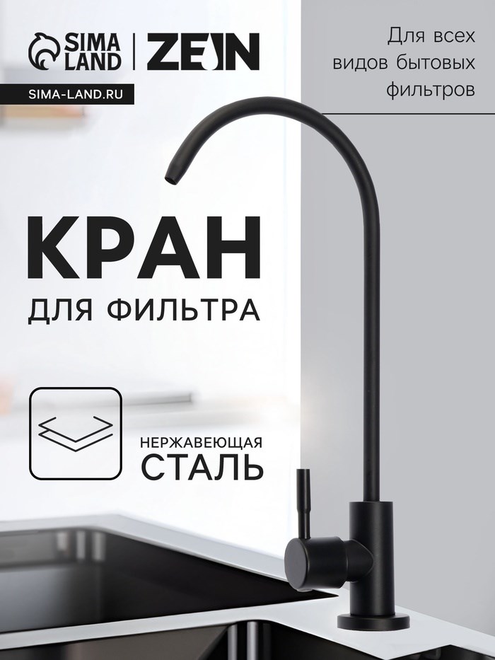 Кран для всех видов бытовых фильтров ZEIN К-05, нержавеющая сталь, черный