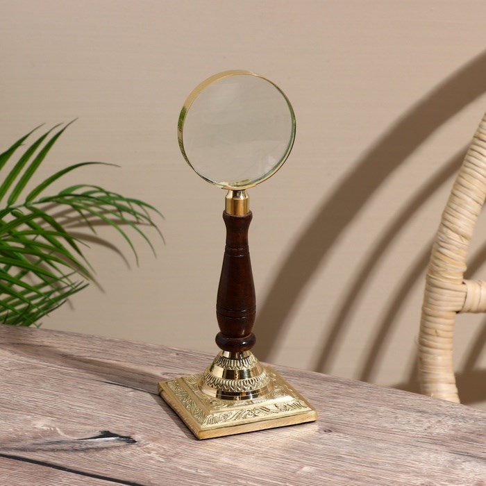 Лупа настольная сувенирная "Рист" дерево, латунь 25 см