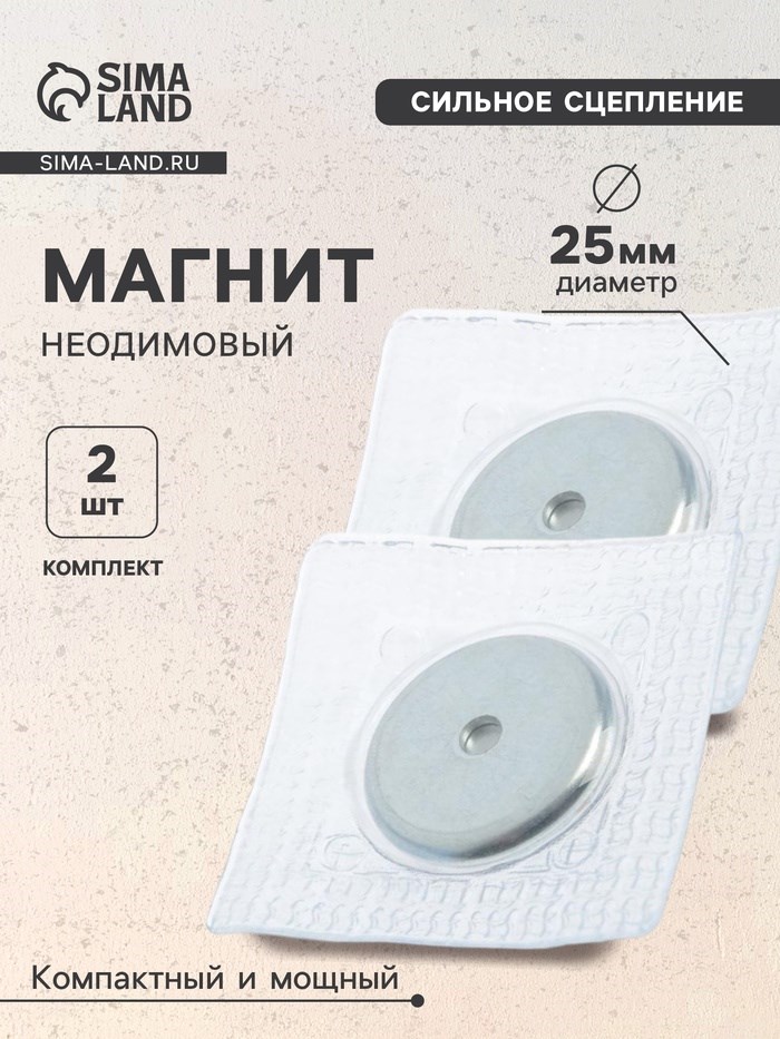 Магнит неодимовый для авто, d 25 мм, набор 2 шт