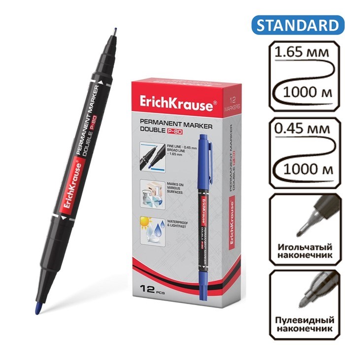 Маркер перманентный ErichKrause Double P-80, двусторонний, синий