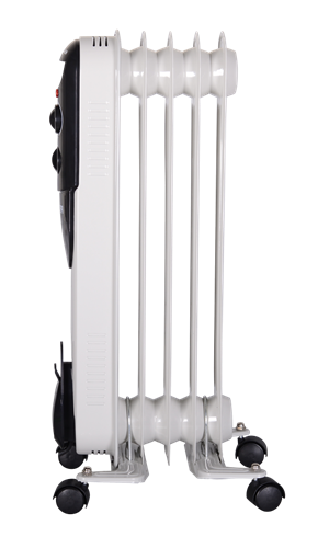 Как устроен масляный радиатор? Масляный нагреватель представляет собой герметично закрытую металлическую ёмкость, своей формой напоминающую радиатор центрального отопления, заполненную минеральным маслом. Внутри ёмкости размещаются нагревательные ТЭНы, расположенные в нижней части корпуса и полностью погруженные в масло. ТЭНы разогреваются и передают свою тепловую энергию маслу, которое, в свою очередь, нагревает ребристый корпус масляного радиатора. Поскольку поверхность корпуса масляного нагревателя имеет сравнительно невысокую (не превышает 60 С) температуру, нагреватели такого класса практически не сушат воздух и не сжигают находящуюся в нем пыль.