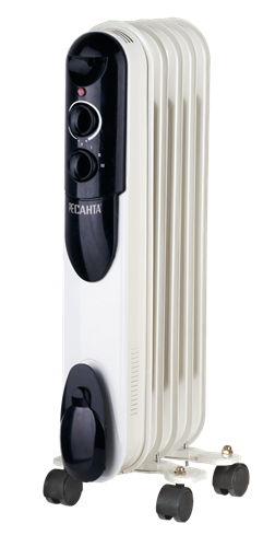 Масляный радиатор РЕСАНТА ОМПТ-5Н предназначен для обогрева воздуха в небольших помещениях. Особенности радиатора: Термостат регулируется вручную при помощи удобной ручки. Переключение режимов обогрева осуществляется удобной ручкой. Световой индикатор для контроля рабочего состояния масляного радиатора. Для удобства перемещения конструкция прибора оснащена колесами.