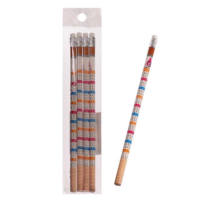 Набор чернографитных карандашей с ластиком и таблицей умножения, 4 штуки
