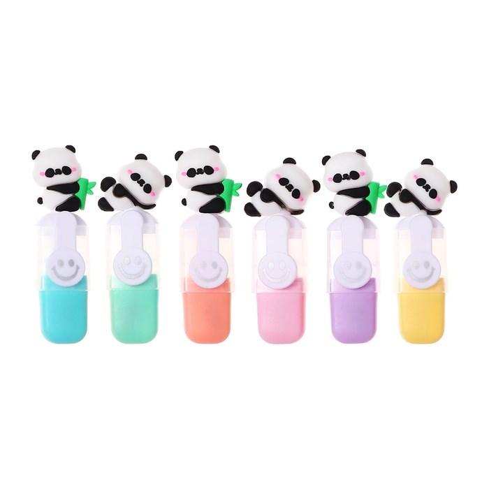 Набор маркеров текстовыделителей 6 штук 6 цветов, в пенале на молнии Панды