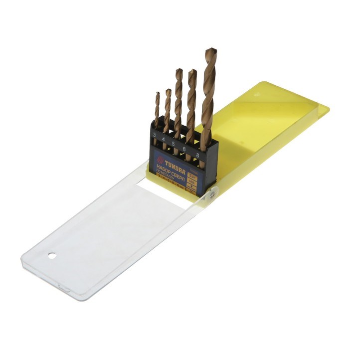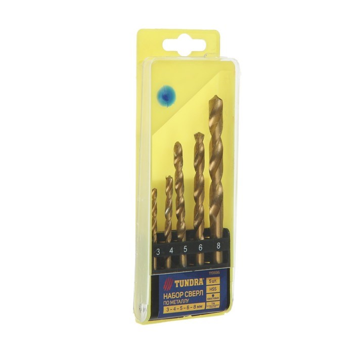 Набор сверл по металлу ТУНДРА, HSS, TiN, цилиндрический хвостовик, 3-4-5-6-8 мм, 5 шт.