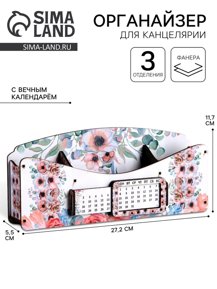 Органайзер для канцелярских предметов "Цветочная долина", с вечным календарём