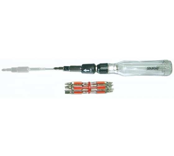 Технические характеристики Тип наконечника : Torx (T, Tx)/Phillips (PH)/Slotted (SL)/Pozidriv (PZ)/Шестигранный (HEX) ; Количество насадок в наборе, шт : 30 ; Трещоточный механизм : есть ; Намагниченный наконечник : нет ; Ударная : нет ; Для точных работ : да ; Материал рукояти : пластик ; Диэлектрическое покрытие : нет ; Форма ручки : Прямая ; Гибкая : да ; Материал насадок : сталь ; Тип шлица : SL, Ph, Hex, PZ, Torx ;Комплектация Отверточная рукоять реверсивная с ГИБКИМ удлинителем; Биты:; SL 1,0, 1,5, 2,0, 2,5, 3,0, 3,5, 4,0; РН 000, 00, 0, 1; PZ 0, 1; НЕХ 0,7, 0,9, 1,3, 1,5, 2,0, 2,5, 3,0, 4,0; Т 4, 5, 6, 7, 8, 9, 10, 15, 20; Кейс.