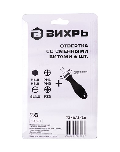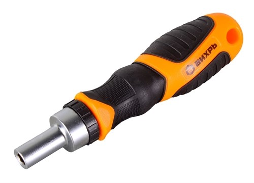 Отвертка Вихрь со сменными битами 6 шт – это прочный и качественный комплект для работы с крепежом различного типа и размеров. Хромванадиевые биты отличаются прочностью, стойкостью к износу и увеличенным рабочим ресурсом. Благодаря реверсивному механизму отсутствует необходимость совершать перехват рукой, что снижает нагрузку на кисть, а также не нужно извлекать наконечник отвёртки из шлица крепёжного элемента, что повышает скорость и эффективность выполнения работы. Двухкомпонентная ручка имеет эргономичную форму, делает хват комфортным и надёжным. Биты с магнитным наконечником удерживают небольшие крепёжные элементы и облегчают работу.