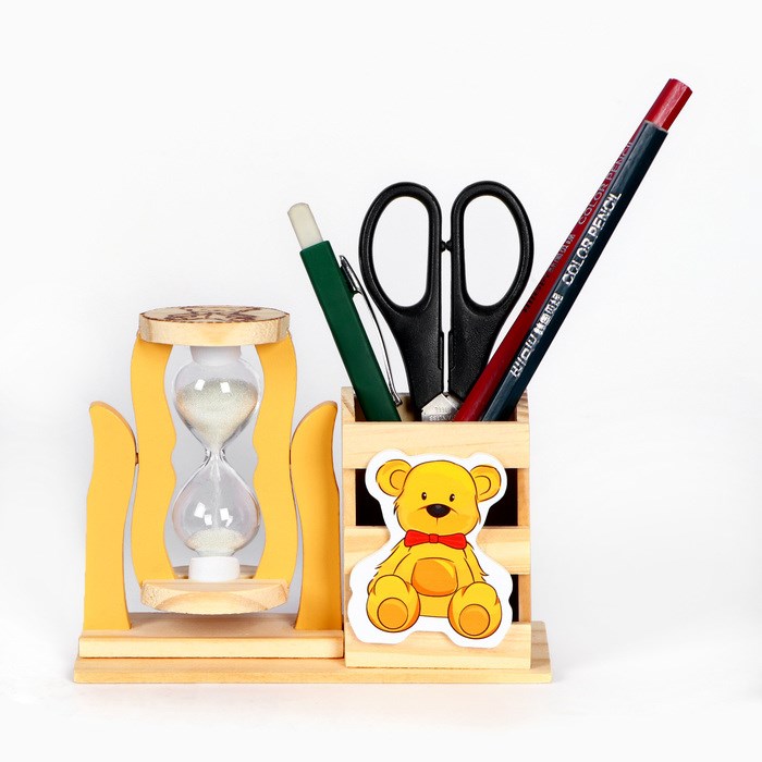 Песочные часы "Медвежонок", сувенирные, с карандашницей, 13.5 х 13.5 х 10 см, микс