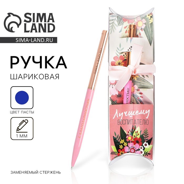 Подарочная ручка с поворотным механизмом «Лучшему воспитателю», металл, синяя паста, 1.0 мм