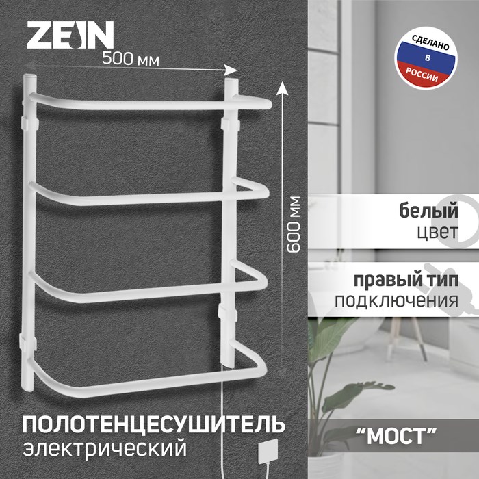 Полотенцесушитель электрический ZEIN PE-07 "Мост", 500х600 мм, 4 перекладины, белый
