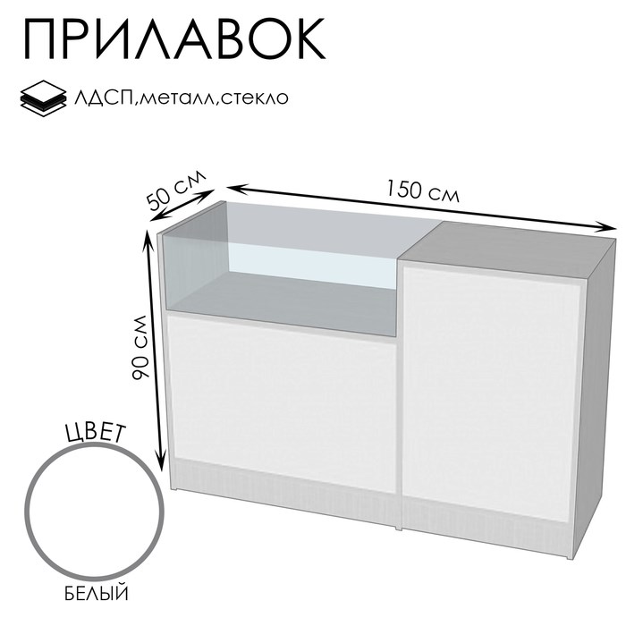 Прилавок П 2, 1500×500×900, ЛДСП, стекло, цвет белый