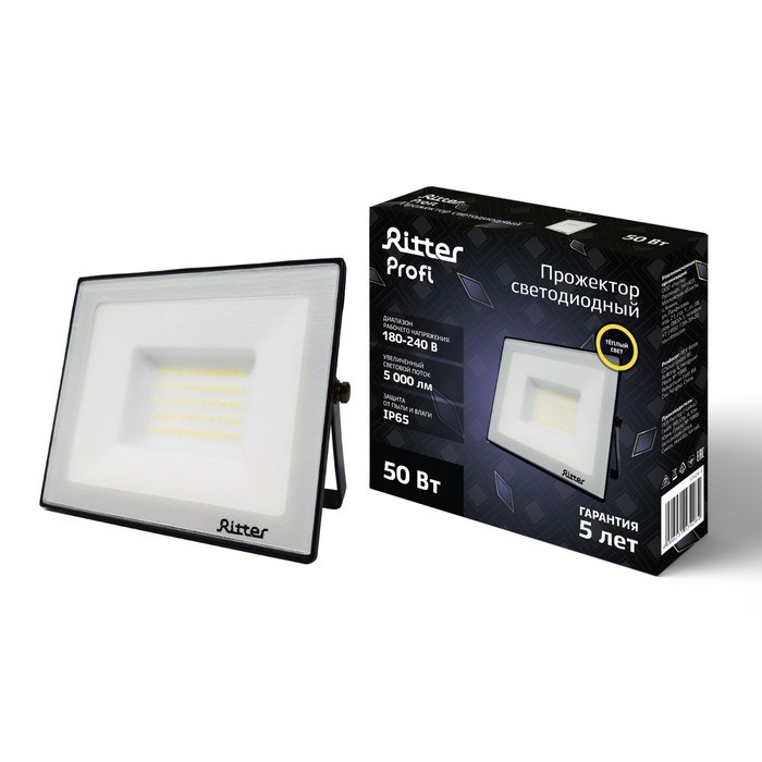 Прожектор светод серия PROFI 230В 50Вт 2700К 5000Лм IP65 черный, гарантия 5 лет 53428 4 Ritt