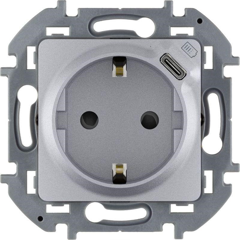 Розетка 1-м СП Inspiria 16А IP20 250В 2P+E немецк. стандарт с заряд. устройством USB тип C 1.5А 5В механизм алюм. Leg 673772