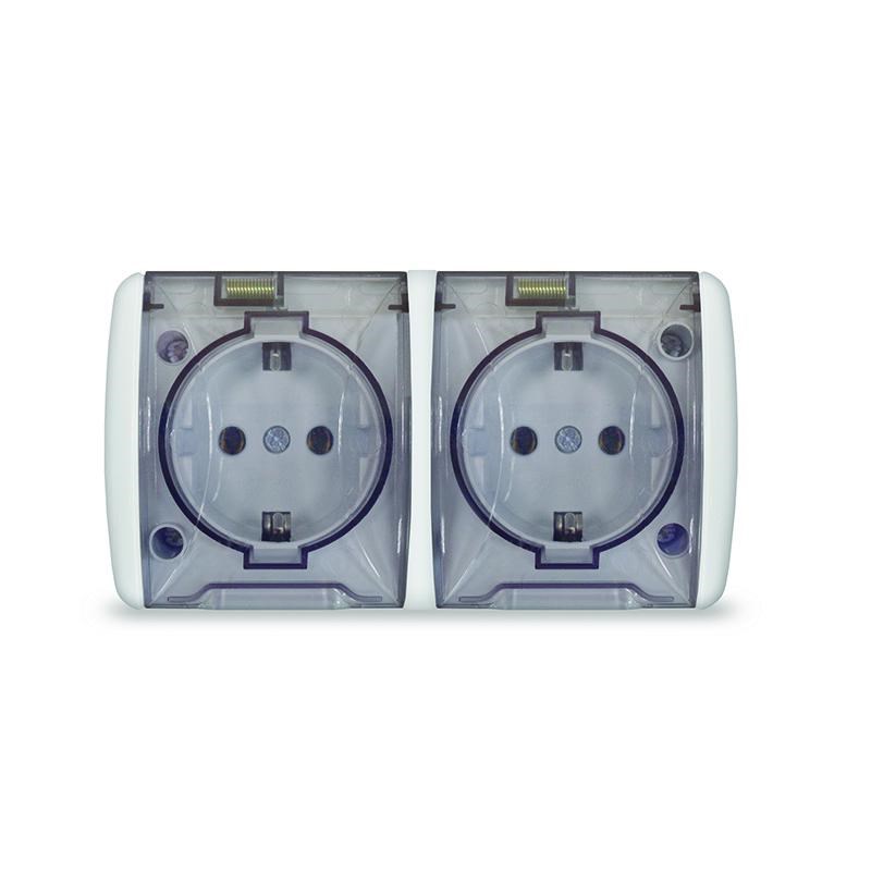 Розетка 2-м ОП Клио 16А IP44 с заземл. с прозр. крышкой бел. UNIVersal К2232