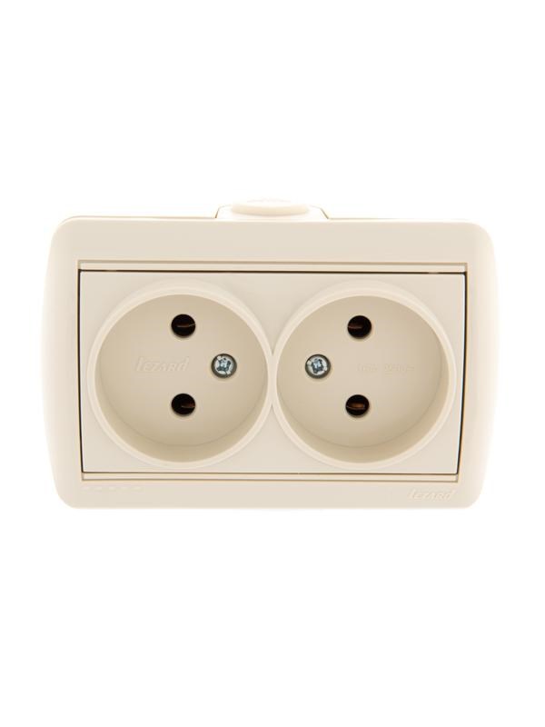 Розетка 2-м ОП Nata 16А IP20 без заземл. керамика крем. LEZARD 710-0300-128