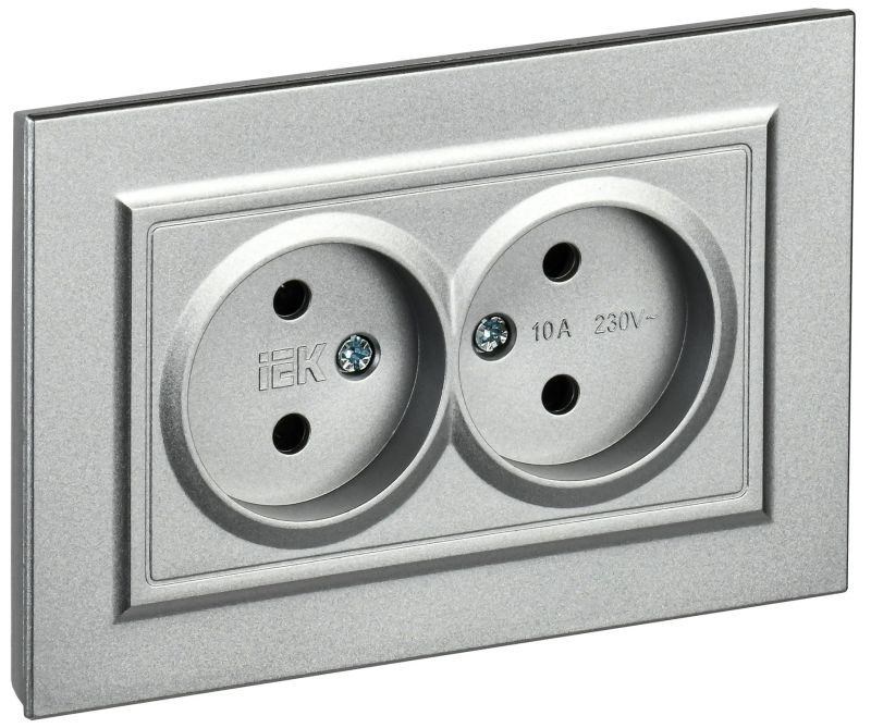 Розетка 2-м СП BRITE РС12-2-БрА 10А в сборе без заземл. без защ. шторок алюм. IEK BR-R20-10-K47-F
