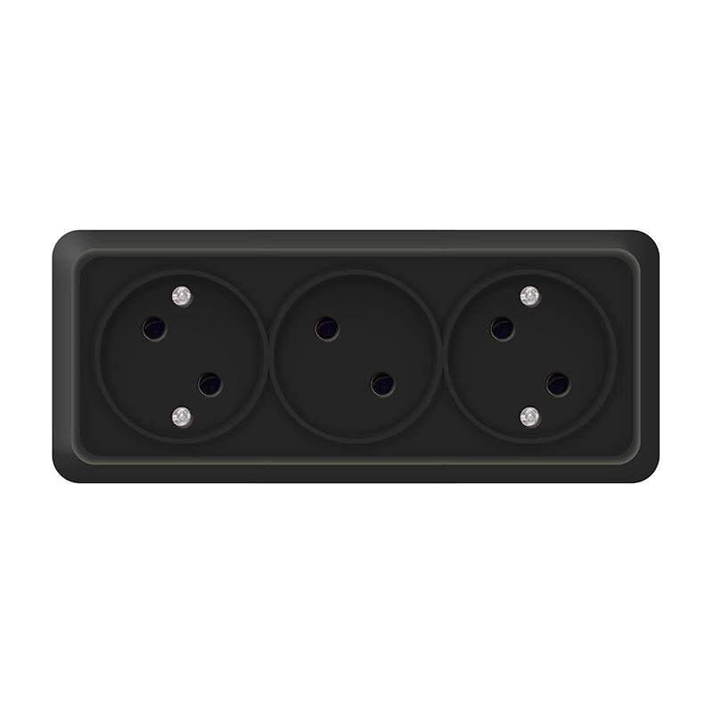 Розетка 3-м ОП Олимп 16А IP20 без заземл. черн. Universal 2217