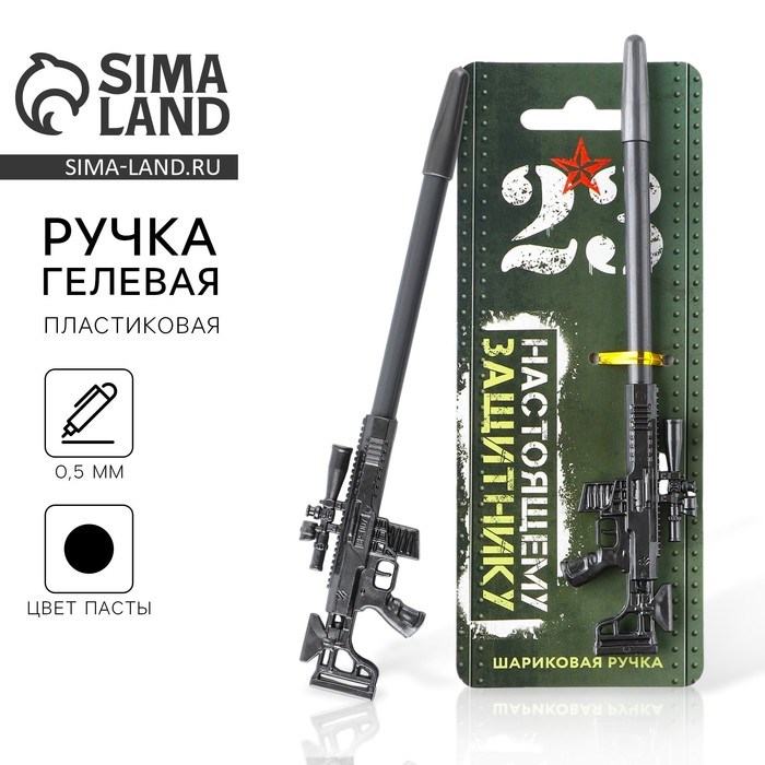 Ручка прикол автомат, чёрная паста «Настоящему защитнику» пластик, 0,5 мм
