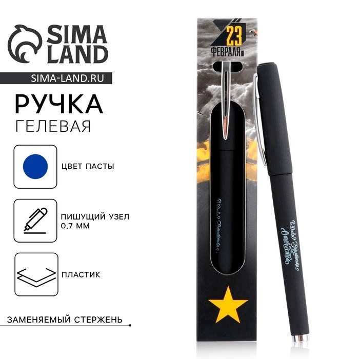 Ручка шариковая пластик, синяя паста «23 февраля»