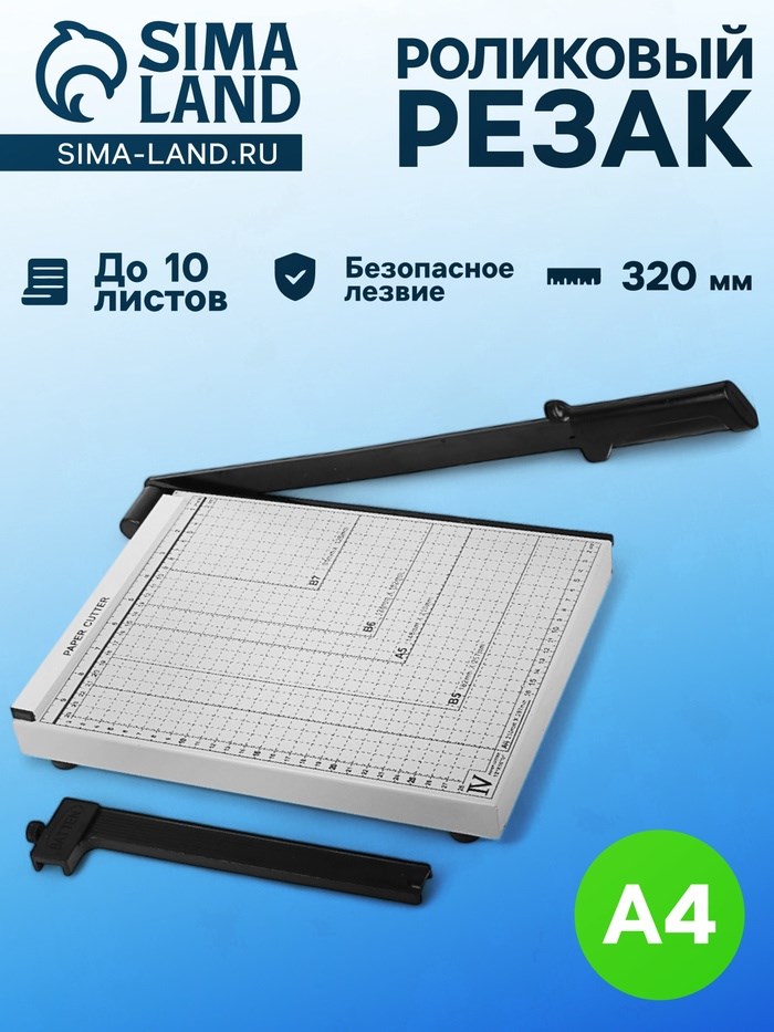 Сабельный резак для бумаги A4, до 10 листов, металлическая основа, длина реза 320 мм