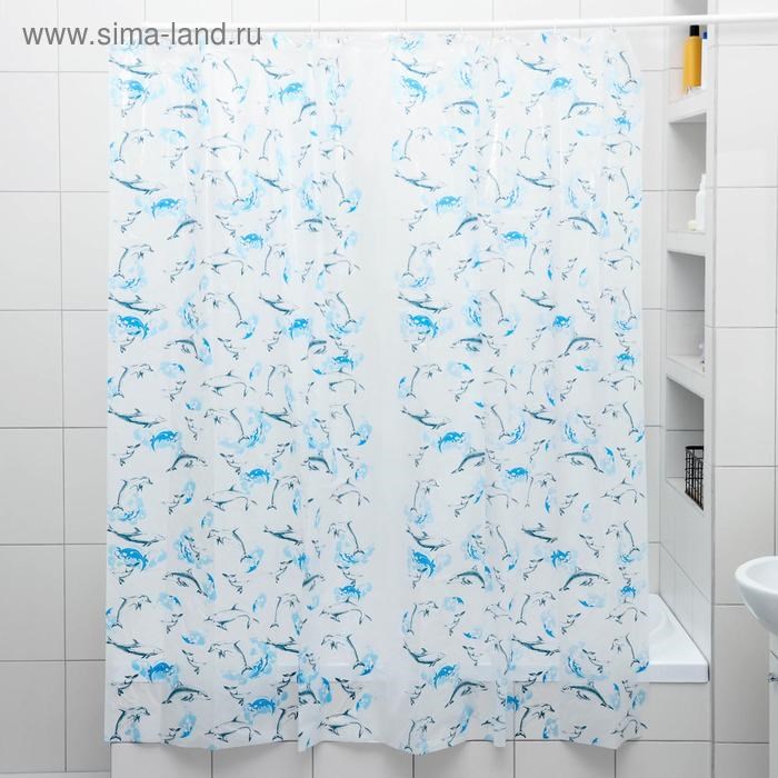 Штора для ванной «Дельфины», 180×180 см, полиэтилен, цвет белый