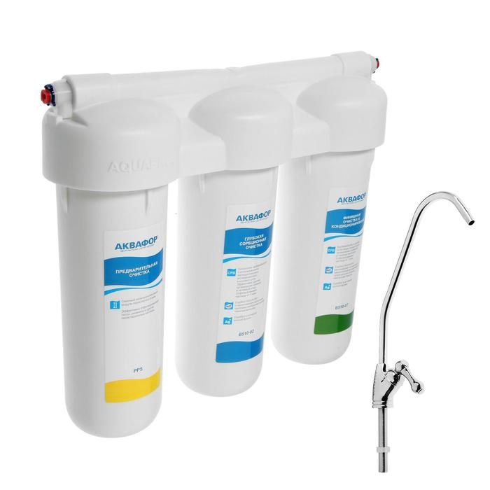 Система для фильтрации воды "Аквафор" Трио Норма, РР5/В510-02/В510-07, 3-х ступенчатый, с краном, 2 л/мин