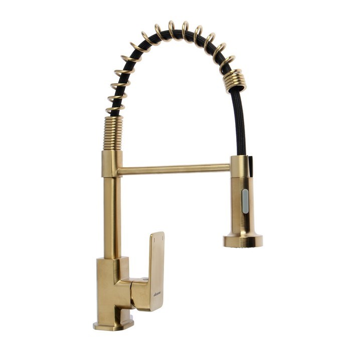 Смеситель для кухни Accoona A44126AW, однорычажный, гибкий излив, 2 режима, высокий, золото