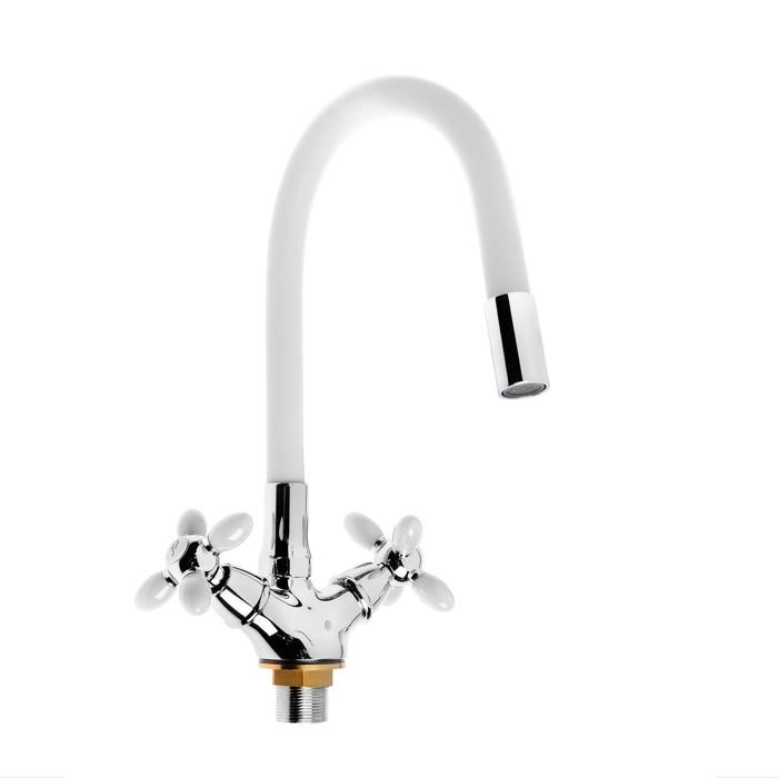 Смеситель для кухни Accoona A4882G-1, двухвентильный, с гибким изливом, белый