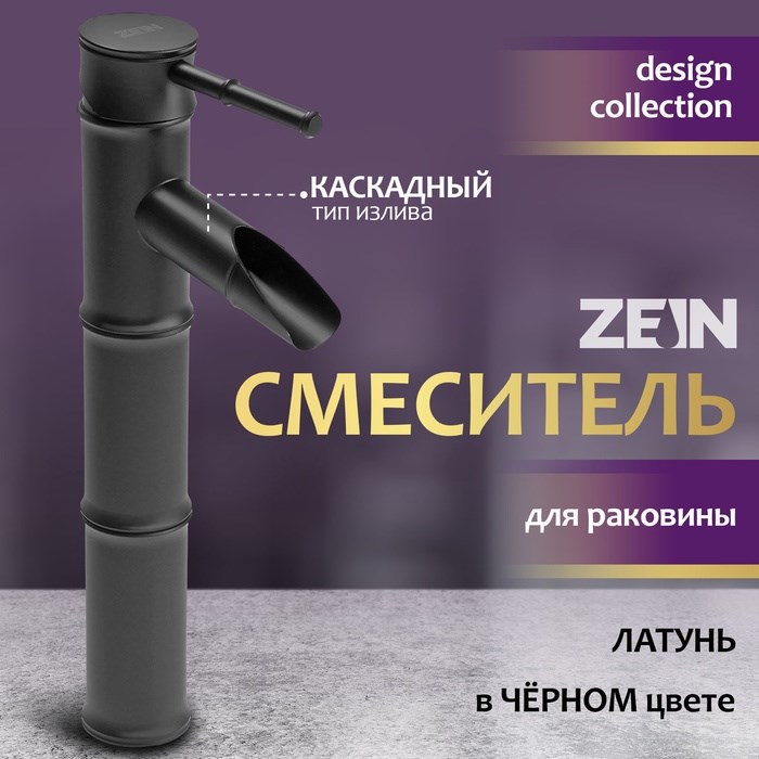 Смеситель для раковины ZEIN Бамбук, водопад, без подводки, латунь, цвет черный