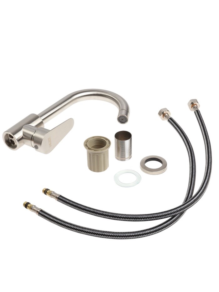 Смеситель для раковины ZEIN Z2392, картридж 40 мм, короткий излив, нержавеющая сталь, сатин