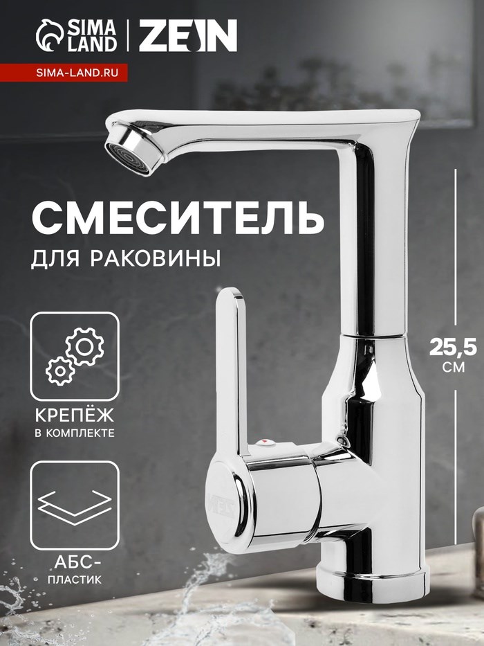 Смеситель для раковины ZEIN Z3698, поворотный излив высотой 18 см, ABS-пластик, хром