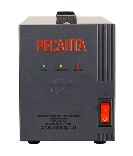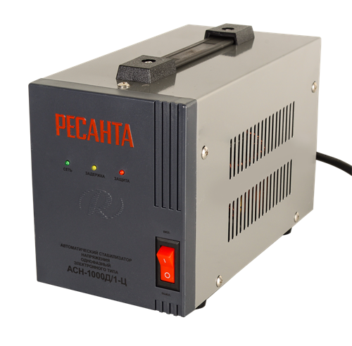 Стабилизатор напряжения Ресанта АСН-1000Д/1-Ц предназначен для поддержания стабильного напряжения сети и питания электроприборов бытового назначения 220В, 50 Гц. Колебания напряжения в сети выше допустимых норм приводят к отрицательным последствиям для электрооборудования.Стабилизатор Ресанта АСН-1000Д/1-Ц предназначен для обеспечения качественной работы различных бытовых устройств в условиях нестабильного по значению напряжения в сети. Данная серия разработана в соответствии с международными стандартами для защиты подключенных устройств от аварийных скачков электроэнергии. Серия АСН-1000Д/1-Ц относится к релейному типу стабилизаторов, обеспечивающих ступенчатое регулирование выходного напряжения с высокой точностью его поддержания.Предназначен для работы в условиях климата с диапазоном рабочих температур от -10 до +40°С и относительной влажности не более 80%