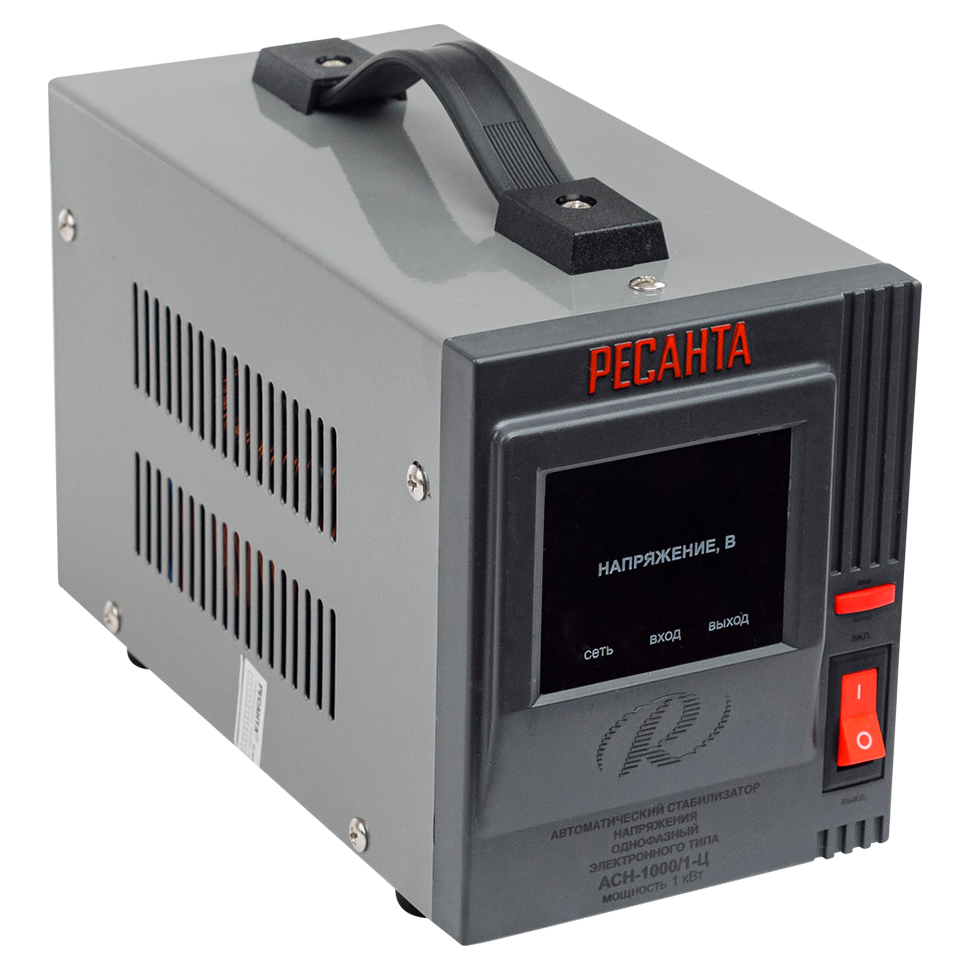 Стабилизаторы оснащены микропроцессорным управлением, цифровым индикатором напряжения. На дисплее отображается входное/выходное напряжение. Комплектация: Стабилизатор напряжения РЕСАНТА Инструкция Упаковка Преимущество: №1 на рынке России Эргономичный и компактный Цифровой дисплей Кнопка смены отображения исходящего напряжения на входящее Время регулирования напряжения минимально и составляет менее 15 мсек. Т.е. менее 1 секунды