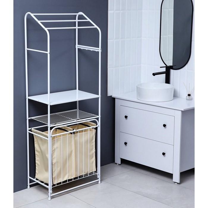 Стеллаж с двойной корзиной для белья и перекладинами, 2-х ярусный, 60×35×160 см, цвет белый