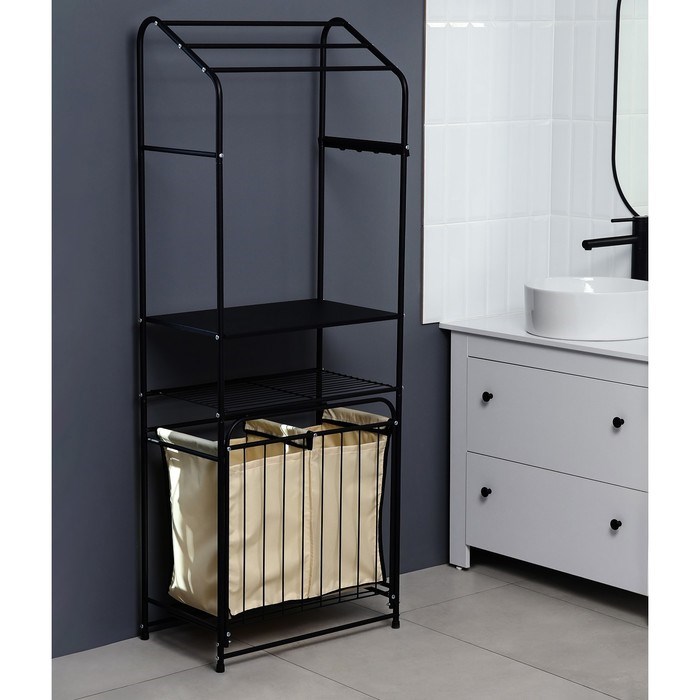Стеллаж с двойной корзиной для белья и перекладинами, 2-х ярусный, 60×35×160 см, цвет чёрный