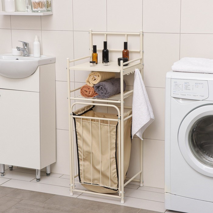 Стеллаж с корзиной для белья 2-х ярусный, 38×35×105 см, цвет бежевый